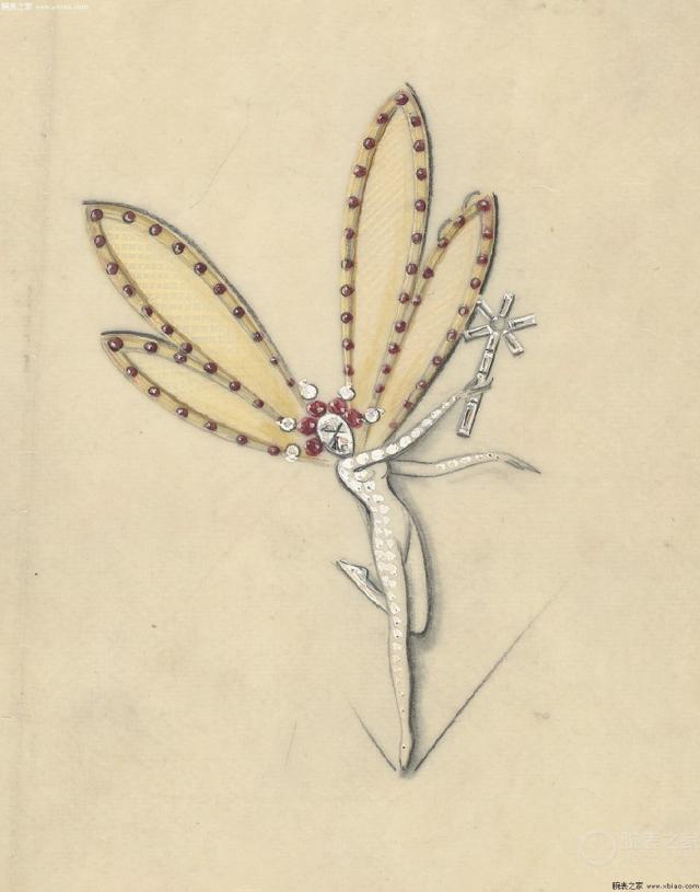 (Fairy胸针设计图, 1945 年,Van Cleef & Arpels Archives)