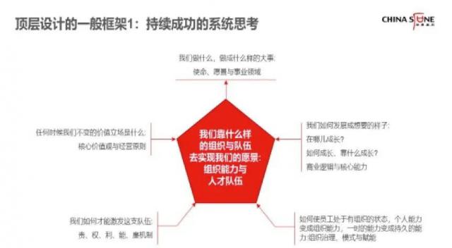 1. 我认为中国的两家公司更注重顶层战略设计。一个是华为,阿里也非常重视互联网公司的价值观和顶层设计。阿里的统筹规划是“上三路”、“下三条路”和“上三条路”是使命、愿景和价值观。“下三条路”是在组织和人才队伍中贯彻核心价值观。 KPI 世界。中国企业在数字化、智能化时代需要新的统筹规划。
