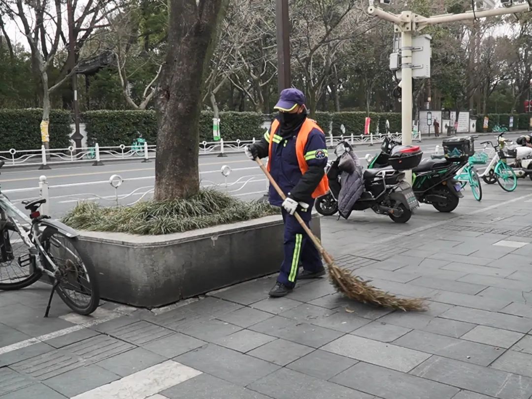 强烈的冷空气袭来,嘉定的环卫工人依然坚守岗位,默默为城市的整洁与安全做出贡献。