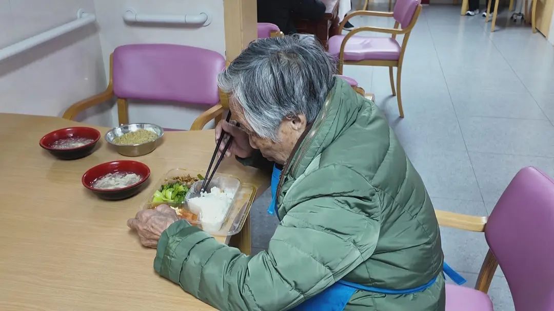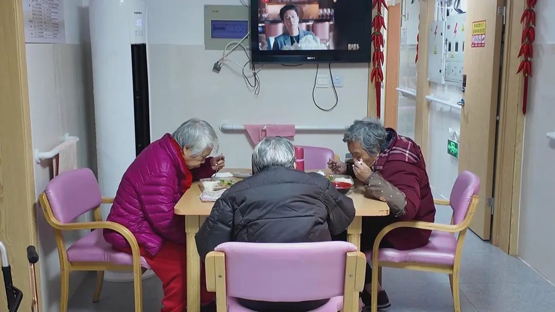 除了热腾腾的饭菜,养老院还为老年人准备了舒适的休息环境。每个区域的空调和电视都提前打开,室温保持在宜人的20℃。老人边吃边看电视,脸上洋溢着满意的笑容。