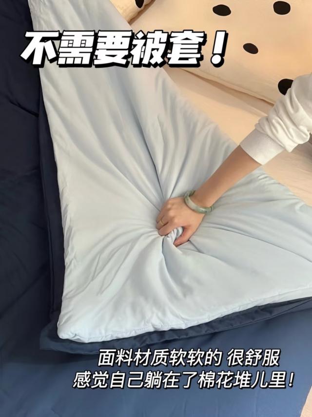 普通的被子在使用之前还得套被子。,想必每个人都有这种感觉,一拉全是被套,被子都团在一起,盖之前还要先抖抖。