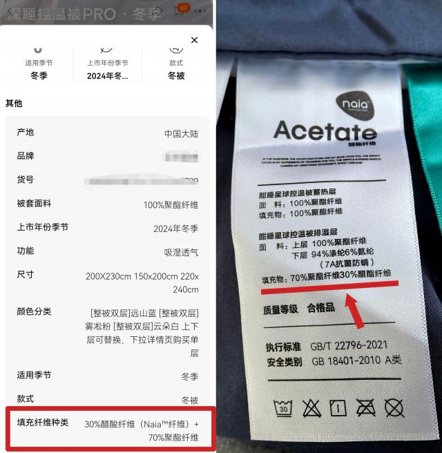 左 YA 朵控温被 PRO 布料,右熟睡星球控温被布料▲