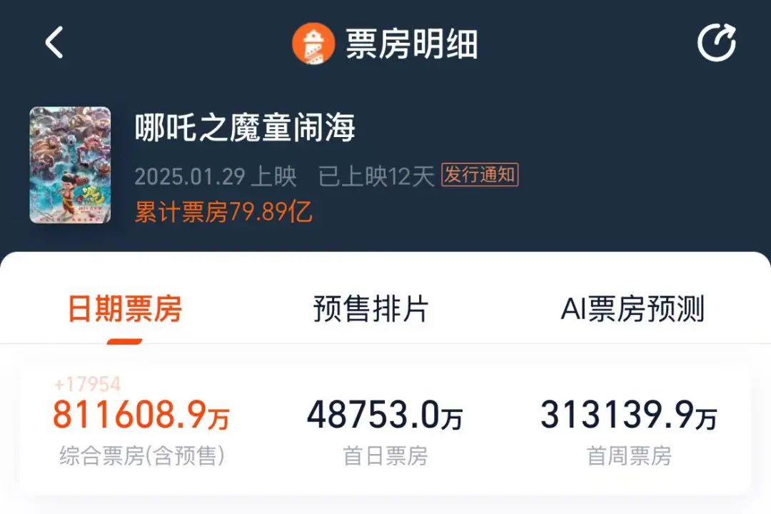 按照灯塔专业版AI票房预测,《哪吒2》票房最终将达到110亿元。值得注意的是,根据AI票房预测,今日《哪吒2》票房将达到80.18亿元,目前,《哪吒2》含预售综合票房已经达到81.16亿元。