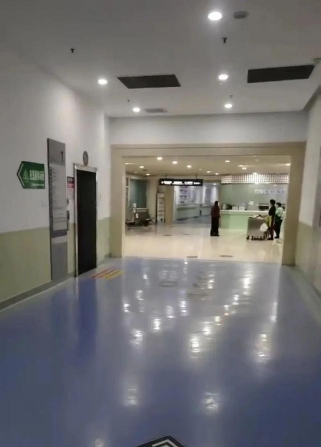 视频中,南湖医院一楼的咨询大厅空无一人,每个咨询室的门都关着。走廊里只有几个工作人员,楼门口正在接病人出院的救护车。