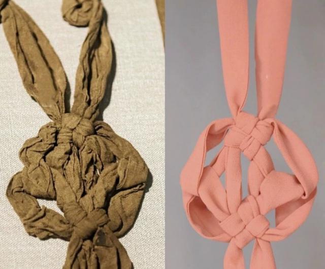 报恩寺遗址 ( 这就是大家常说的“长干寺” ) 北宋时期出土的绸缎文物“系结素罗丝带",中间出现了这种草结。