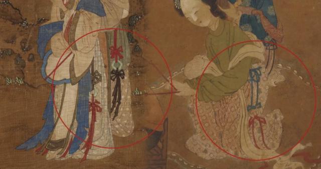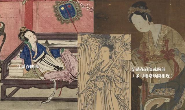 首先要注意的是,它不是“渔网”,而是历代流行仕女画中的结绳装饰。这种装饰可以归类为“绶","""""本来是指用来挂印章的丝织带,初期用来做礼仪差异身份。
