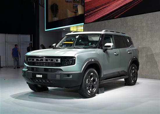 新车采用捷途家族式设计语言,方盒造型使其更具辨识度。同时,它在前格栅位置更换了捷途的英文标志,看起来更简单。下面还包裹着厚厚的前围,感觉更厚。