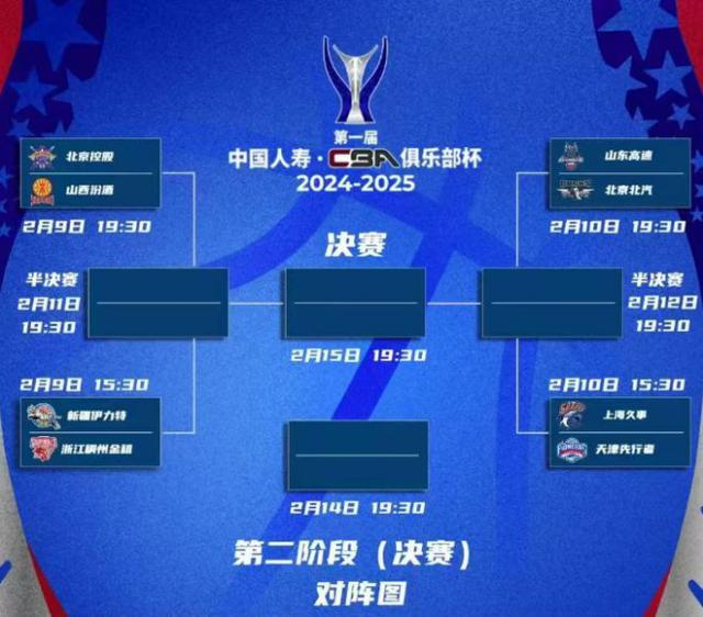第一届 CBA 俱乐部杯决赛阶段(八强赛) - 半决赛 - 决赛),将会在那里 2 月 9 日 -15 日本在陕西省体育馆开战。北京,上海,新疆,北京控制等。 8 经过预选赛争夺晋级决赛阶段,支队将采取单败淘汰制争夺首届决赛。 CBA 俱乐部杯冠军,冠军 200 奖金一万元。