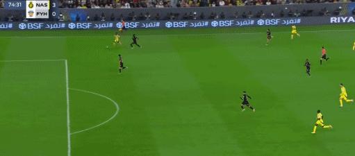 冬季窗标王杜兰在赛场上连进。 2 球,利雅赢得了胜利 2-0 的领先。第 74 分钟,属于 C 罗的表演来了 -- 利雅胜利反击,队友在边路进球。C 罗迅速在自家半场开始,在中路接应。