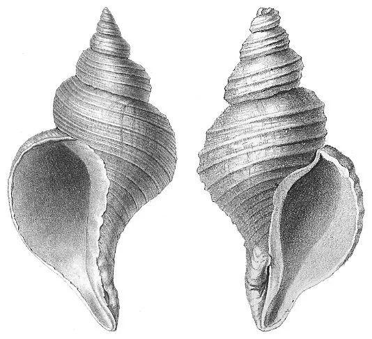 两种不同的海螺:左边是一般左旋的棱峨螺(已经灭绝),右边是一般右旋的田峨螺( wikimedia