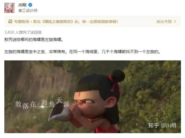 在第一部《哪吒魔童降世》中,敖丙给了哪吒一只海螺作为友谊的证明,说只要海螺吹响,他就会千里相遇。当时有网友发现,敖丙给哪吒的海螺是一只左旋海螺,表示这种螺丝非常珍贵。