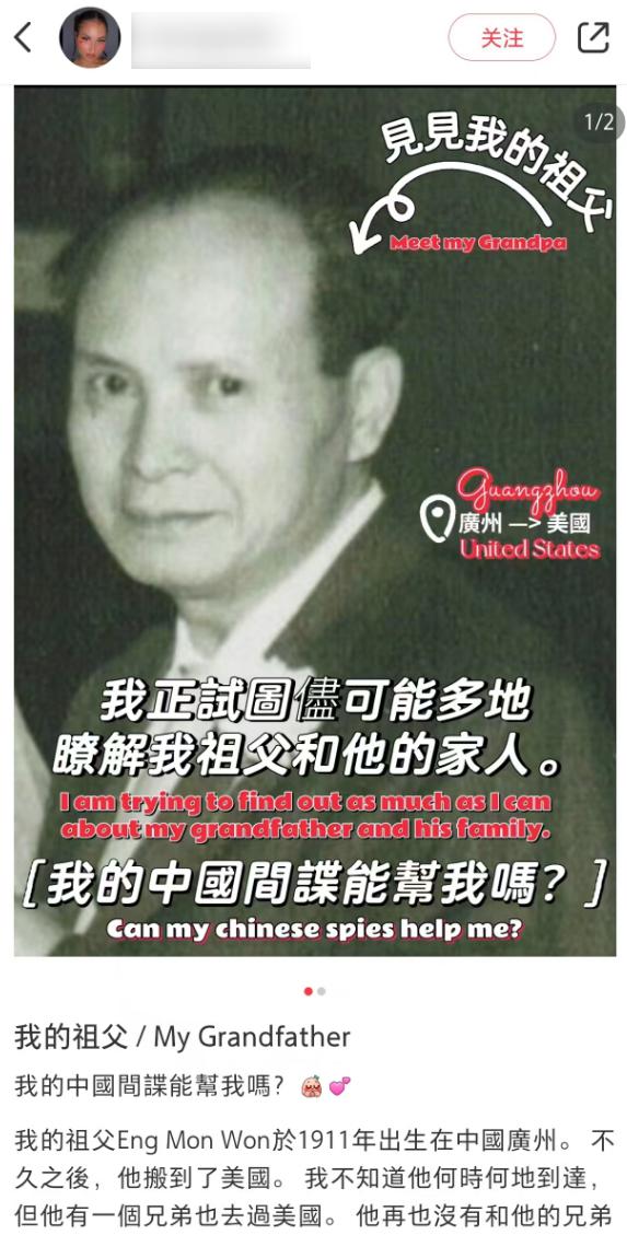 不仅仅是分享,很多海外华侨更希望通过小红书找到自己的亲系。