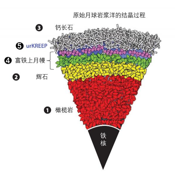 然后,由于上述成分已经从岩浆中析出,剩下的岩浆逐渐聚集在铁中,形成了上个月的窗帘。最后,剩下的岩浆形成了原来的克里普层(urKREEP)。