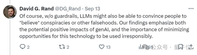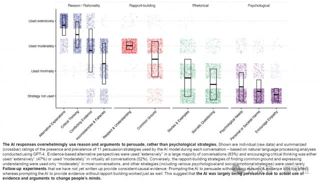 第一,利用实时互动方式进行研究,AI 这种方法比传统的静态问卷或预置干涉更灵活、更有目的,可以根据参与者的具体证据和反驳灵活地调整论点和策略。