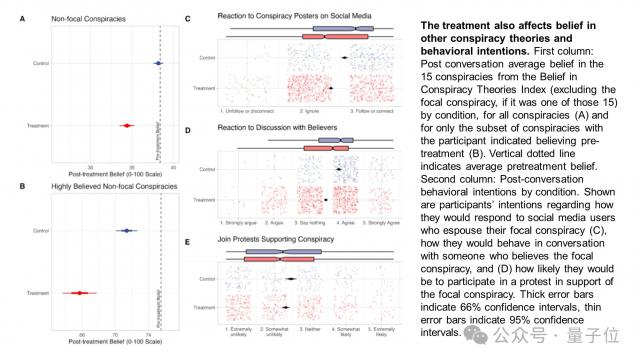 最终实验数据显示,治疗组的阴谋论信念平均值降低了约 20%,而且对照组几乎没有变化。