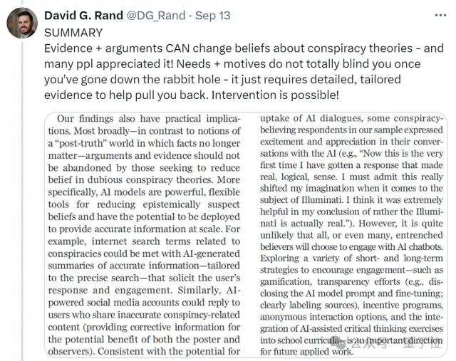 MIT最新的研究已经登上Science 封面:与 AI 对话,有利于持续减少阴谋论的影响。