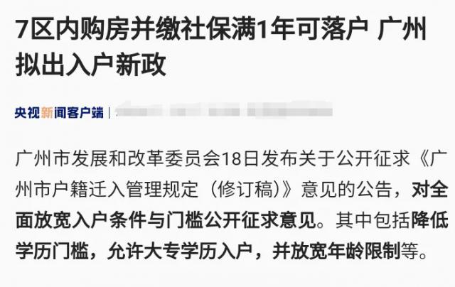 日前,广州颁布了落户新规定,全日制大专以下学历群体, 7 在外围城区和郊区买房并缴纳。 1 年社保,3 每年缴纳的税收超过了 20 万元的,可以申请落户。