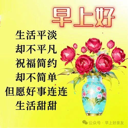 每天早上,愿所有的祝福和问候都带着我们的爱,堵在你的酒杯里,红红的,深深的,直到你的心!愿早上的问候带给你清爽的心情!早上好!