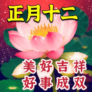 正月十二到了,新年快乐,万事如意,万事如意。迎接新年,问候传递,祝福传递,祝你万事如意,好运永远伴随,安全快乐伴随,笑容永远开放,健康永远伴随!