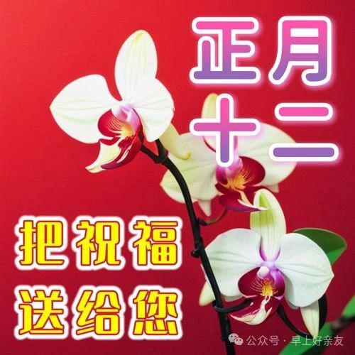 早上好,今天是正月十二,正月十二送祝福。愿你永远快乐,永远安全,永远快乐,永远健康,永远光顾好运,永远关心财富,永远持续祝福,永远欢笑,永远陪伴祝福!