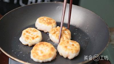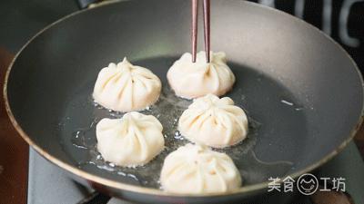 7. 锅内滚油,放入包子,文火慢煎,翻面煎至两面金黄即可。