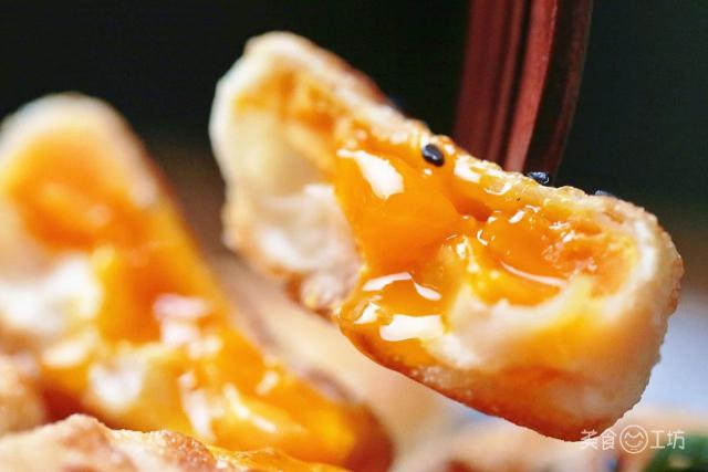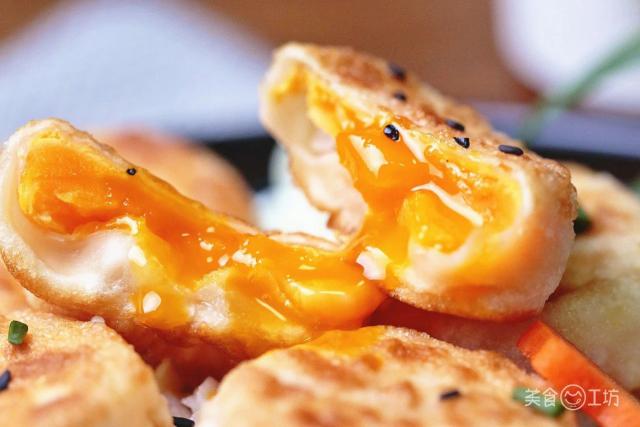 但是在美食君品尝的流心美食中,大部分都是以蛋黄为原料,一戳破表面透明的薄膜,蛋黄液就会慢慢流出。