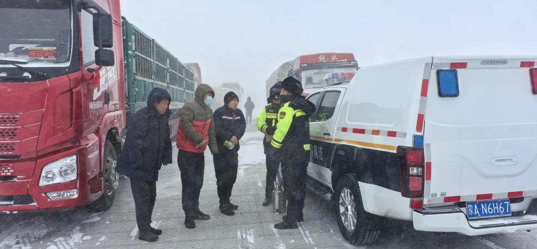 2月7日上午,大队工作人员接到多名停留群众的电话求助,称由于交通管制已经停留了十几个小时,现场气温接近零下30摄氏度,车辆燃油即将耗尽,车内没有额外的水和食物,急需帮助。大队接到群众求助电话后,立即启动极端天气应急计划,组织沿途各中队联合辖区收费、维修等部门派遣物资赶赴现场救援。由于被困车辆较多,经多部门协商后,决定将货车司机和乘客带到收费广场周边的驻地餐厅就餐。另一方面,他们使用叉车开道和执法车辆压速带道。将30多辆私家车转移到收费站附近的酒店进行安置,并帮助协调酒店住宿,促使所有被困人员得到妥善安置。随后,回到收费广场,继续指挥和引导停车车辆有序停车,向被困人员送去免费方便面、面包和热水,同时安抚司机和乘客的情绪,做好路况解释、路线引导、交通路况咨询等工作。,从而为许多返乡人员在寒冷中筑起一道温暖的防线。