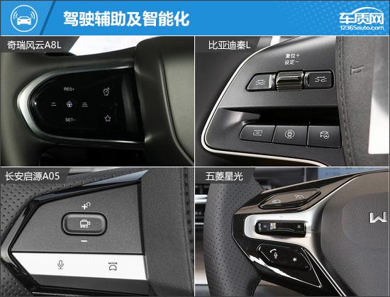 在智能配置方面,由于定价和市场定位因素的限制,四款车都没有配备太先进的智能配置。相比之下,比亚迪秦 L 性能略好,独享中控液晶屏分屏显示,并配有语音连续识别、车载 KTV 和 Wi-Fi 热点,奇瑞风云 A8L 和五菱星光一样。