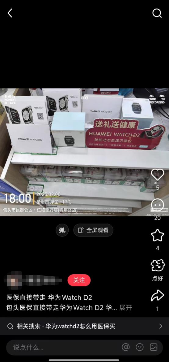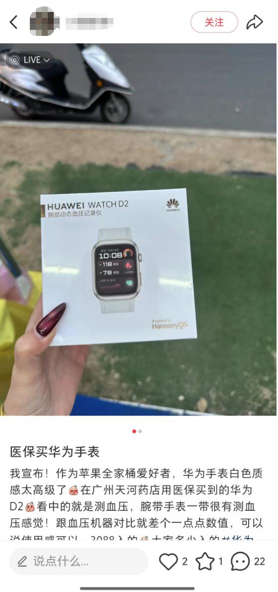 据媒体报道,近日,上海、广东、浙江、安徽等地的网友在社交平台上分享了自己的经验。如何用医保个人账户里的钱去药店买华为? WATCH D2。