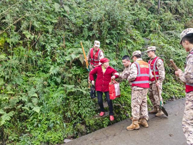 2 月 8 号码,在筠连县沐爱镇金坪村,武警四川总队宜宾支队士兵转移了一名老人。新华社(杨超) 摄)