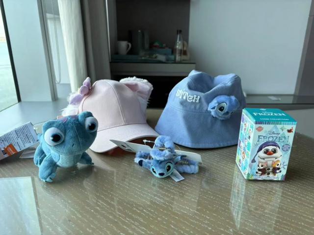 我们 11 多点入园,入园路上有纪念品店,宝宝一下子就被吸引住了。我不禁感慨,宝宝真的长大了,没有像小时候那样挑发带和娃娃,而是选了一顶比较实用的史迪奇帽子,遮阳好看。