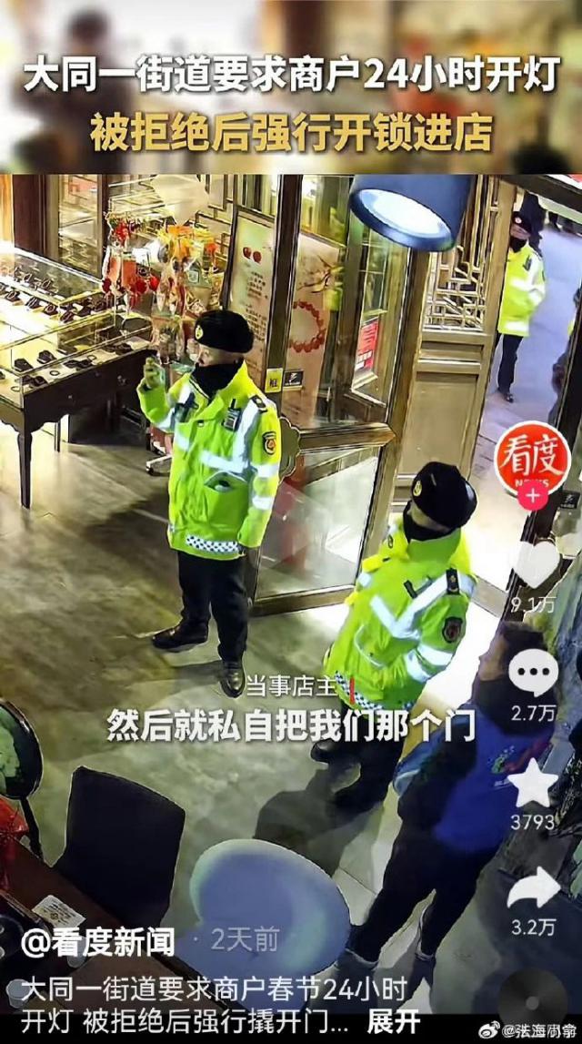 最近几天,大同古城一家商店的老板经历了一场荒谬甚至恐怖的闹剧。