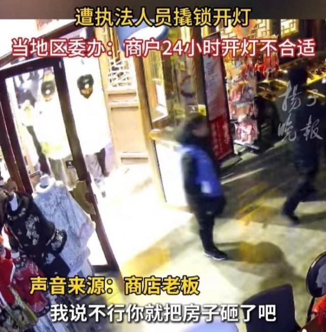 所以,当工作人员和城管执法人员在凌晨巡逻到店门口,打电话让店主开灯时,店主拒绝了。