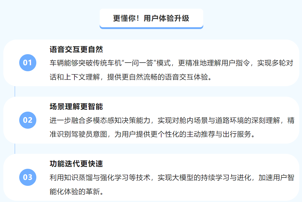 其中,场景理解更加智能化,体现在多模态感知管理能力的进一步融合,对舱内场景和道路环境的深刻理解,对驾驶员意图的准确识别,为用户提供更加个性化的主动推荐和出行服务。