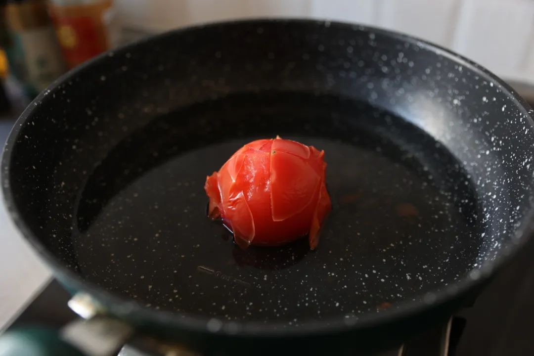 首先,准备新鲜的西红柿和优质的肥牛片。西红柿要红润多汁,这样煮出来的汤才会更浓。西红柿十字滑刀,用大火煮开,放入西红柿中。烫过的西红柿容易去皮,去皮剁碎。