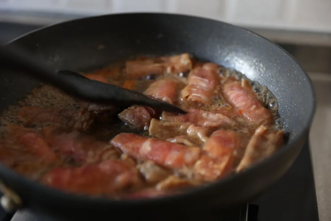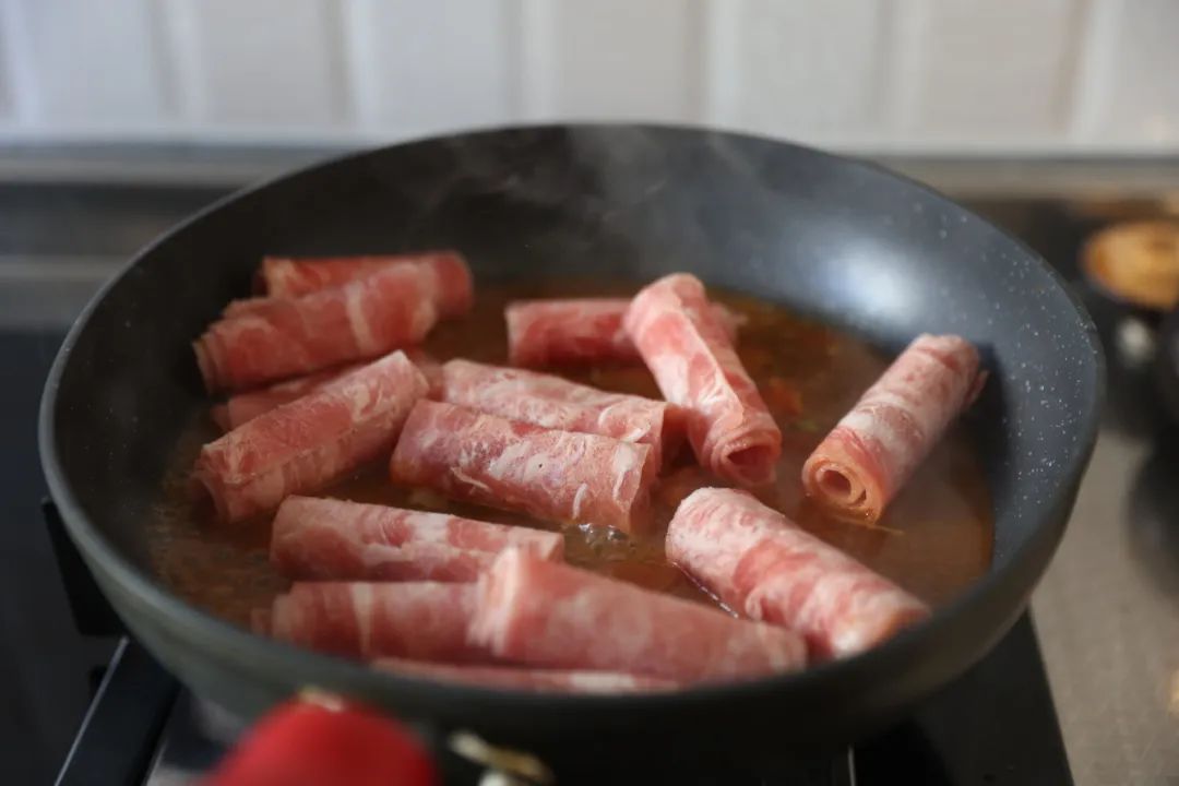 将肥牛片清水洗净,放入另一锅中,取适量汤汁,小火慢炖,使肥牛片充分吸收番茄的酸甜口感。