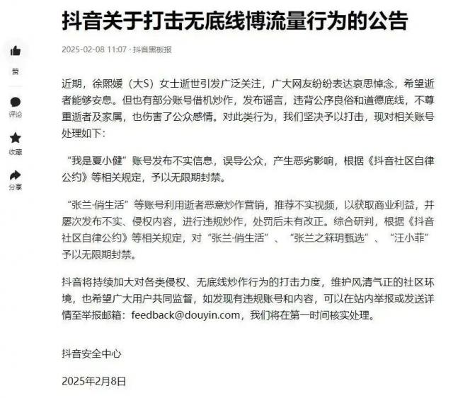 与抖音账号有关的张兰、汪小菲,被平台永久封禁。