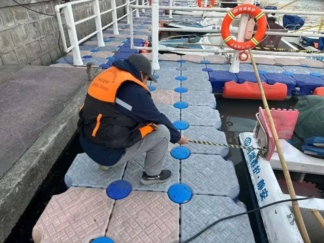 水利设施维修单位检查维修网站、清洁港、水闸、泵房等关键点,重点检查防寒物资储备情况,检查浮筒港连接器是否合适牢固,做好船舶入港防风安全停靠工作,消除潜在隐患。