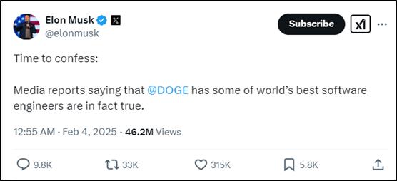 此外,值得注意的是,联邦法官在当地时间周四发布了临时禁令,暂时限制了“政府效率部”对财政部支付系统的访问。