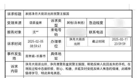 "感谢长春警察帮我找到手机,