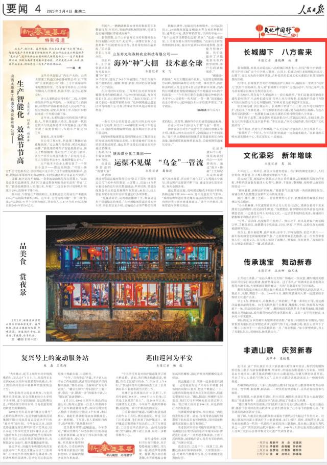 摘要:春节假期,我来到北京延庆区八达岭镇石峡村村口,看到“像守护家园一样守护长城”。 12 一个大字映入眼帘。在山顶上,长城像龙一样向远方延伸。在山脚下,繁华的中国年装饰和古朴悠闲的长城文化元素让古村落喜气洋洋。