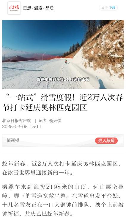 摘要:“滑春雪,过年!”元旦早上,在延庆区中国高山滑雪中心,十几名滑雪爱好者以不同的方式迎接新年——乘缆车来到海拔。 2198 米海陀山顶,在雪道出发平台的大铜钟前排队,一个个上前敲钟祈祷。晨光下,远处的群山堆积在一起,宽敞平坦的雪道被雪板划出美丽的弧线。