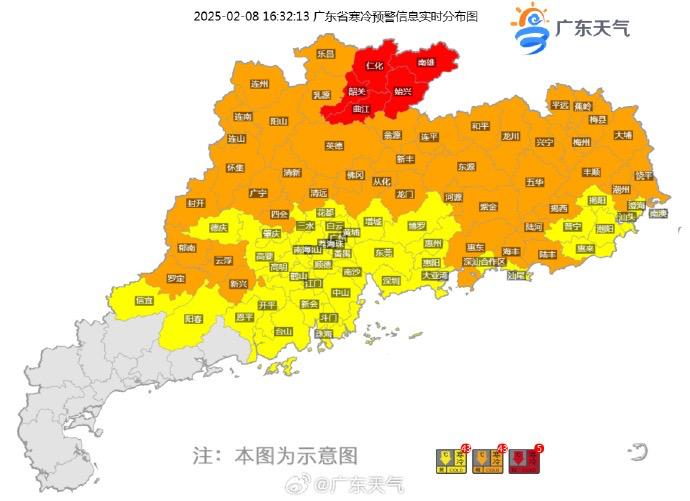 截至昨天16时,济南、合肥、南京、上海、杭州、南昌等地的最高气温创下今年冬天以来的新低。广东还发布了5个红色寒冷警告、43个橙色寒冷警告和43个黄色寒冷警告的91个寒冷警告。