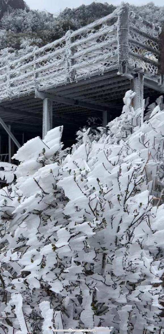 清远金子山雾凇、冰挂于2月8日重现。图/@广东天气