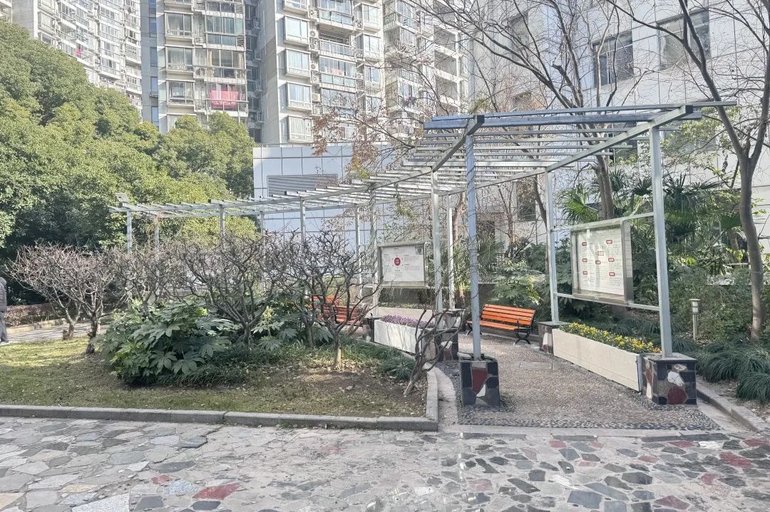 枫杨园居民区所辖的中关村公寓小区健身步道旁,曾经有一个茂盛的紫藤花架。然而,由于年久失修,其木制过道已经腐烂。枫杨园居民区党支部对其进行了改造升级,将原有的废旧葡萄架过道打造成中关村科普长廊园,包括生态保护、垃圾分类、反诈骗宣传、保健等知识。
