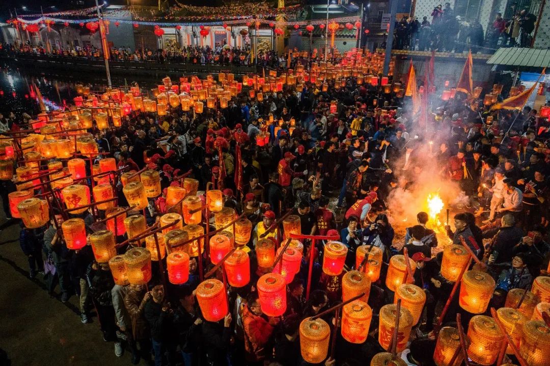 2019年2月18日在广东潮州普宁大长陇村拍摄。大长陇村居民约5万人,为陈氏单姓生活;每年正月十四十五晚上,大长陇近万村民每人举着一串灯笼,迎接灯笼,彻夜狂欢。村民们带着祝福在近乎疯狂的灯笼活动中走向新的一年。灯笼不仅祈求人们繁荣昌盛,也祈求人们繁荣昌盛。也是为了祈求国家富强,世界和平。
