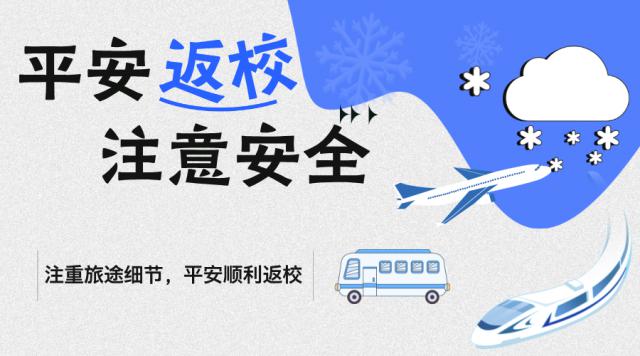 重视旅程细节,平安顺利地回到学校。在回学校的路上,安全是最重要的。在选择公共交通工具时,一定要乘坐正规的运营车辆,避免乘坐来历不明的“黑车” ,随时注意个人财产,保管好贵重物品、身份证、学生证等关键证件。如果开车回学校,出发前一定要仔细检查车辆情况,提前规划好路线,禁止危险驾驶,及时通知家人行程。 到达学校后要及时报平安,确保一路安心。
