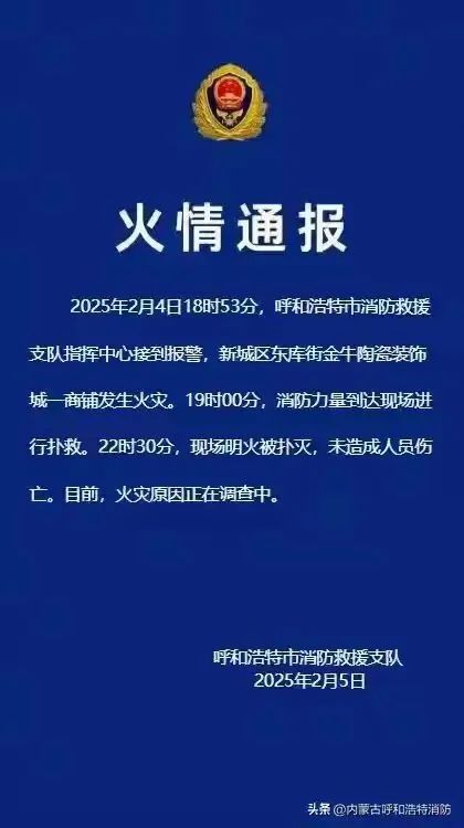 二月五日,呼和浩特消防队发布通知: