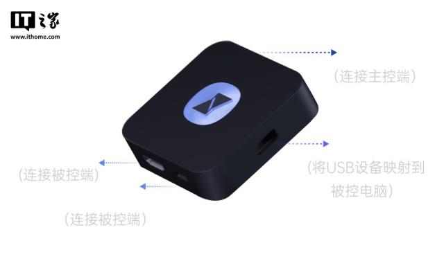 使用时,需根据下图分别使用。 HDMI 接口以及 Type-C 接口连接到被控设备,然后通过另一个 Type-C 主控设备连接接口。