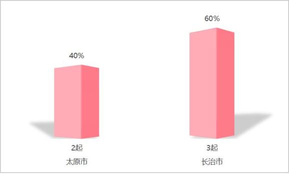 太原市发生火灾2起(占40%),长治市发生火灾3起(共占60%),大同市、阳泉市、晋中市、临汾市、晋城市、吕梁市、运城市、忻州市、朔州市未发生火灾。
